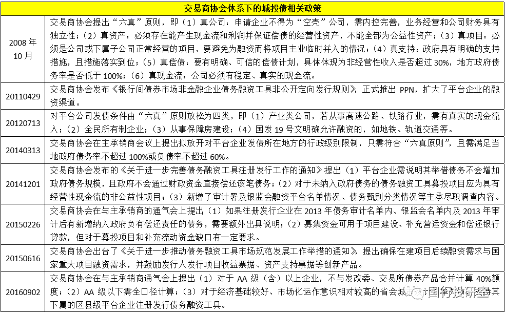 相較而言,城投債在銀行間市場(chǎng)發(fā)行債務(wù)融資工具受到的面上約束可能是最少的,具體來(lái)看城投債發(fā)行中票、短融等債務(wù)融資工具主要受到“六真”原則的約束,即真公司、真資產(chǎn)、真項(xiàng)目、真支持、真償債、真現(xiàn)金流。