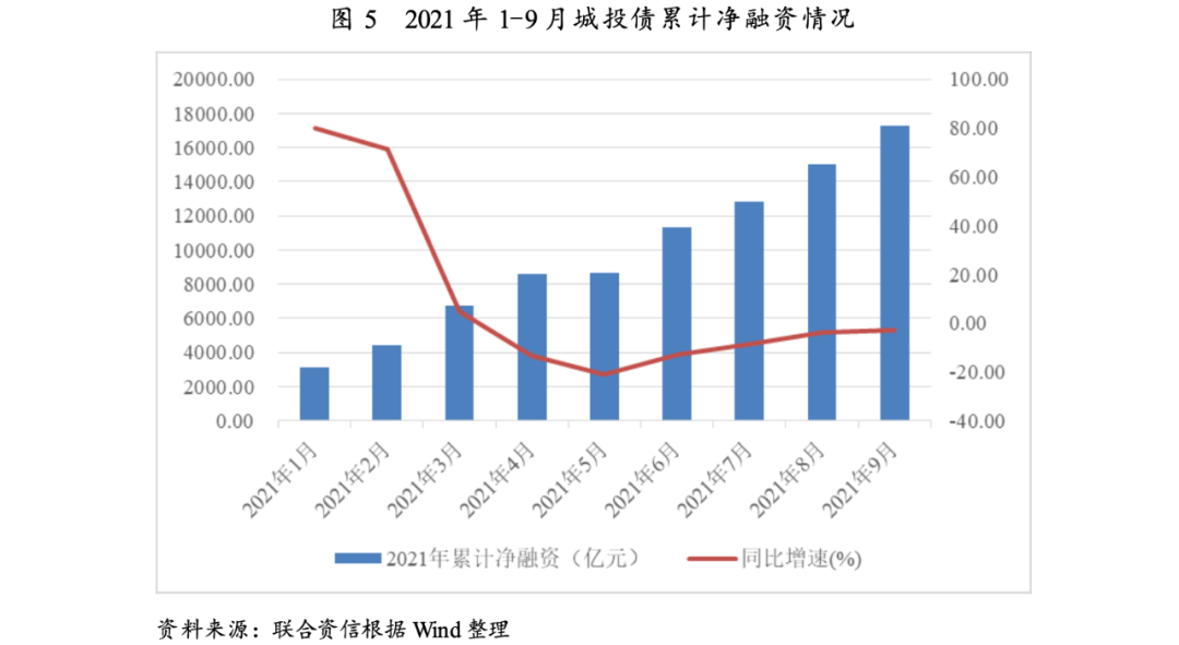 三季度城投債凈融資規模5941.87億元,環比大幅增長52.15%,同比增長25.64%。2021年前三季度,城投債凈融資規模17256.06億元,同比下降2.64%,降幅較上半年(-12.93%)明顯縮小。
