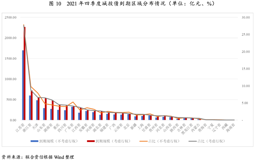 四季度到期的城投債規模較大,地方政府債務負擔較重及凈融資規模持續為負的區域城投企業流動性情況需重點關注。