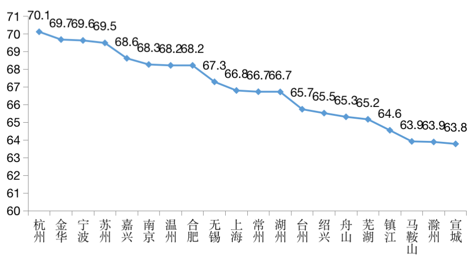 其中,杭州勞動力比重達到70.12%,在長三角41城中居于首位,與2010年全國平均值持平,堪稱長三角地區“活力之城”。放眼全國,杭州勞動力比重僅比深圳、廣州、珠海、佛山、東莞和中山等少數城市略低,人口紅利依然存不容小覷。