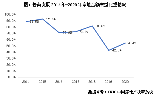 秉持深耕聚力的發展戰略,魯系房企86.8%銷售額全部來自省內城市。結合CRIC監測的2020年重點魯系房企省內銷售金額占比來看,多數魯系房企的業績貢獻主要來自省內城市,重點監測房企合計省內銷售占比達到了86.8%。排名較高的儒辰,其省內銷售額占比達到了100%。根據魯商發展發布的銷售面積推算,其省內占比也達到了87.3%。一方面魯系房企整體規模偏小,不支持企業過度擴張,另一方面,齊魯大地深受儒家文化影響,企業發展穩健,因此在外拓方面相對謹慎,幾家走出去的房企也多以省外風險較小的高能級城市為主。