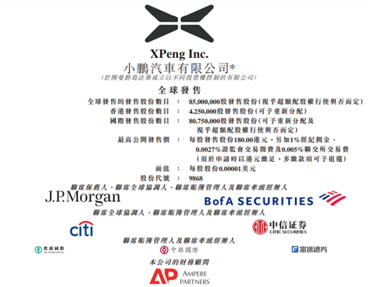 7月6日,小鵬汽車公布IPO結果,共發行8500萬股。其中,香港公開發售425萬股A類普通股,國際發售8075萬股A類普通股,以165港元發行價計算,募資規模約140億港元。
