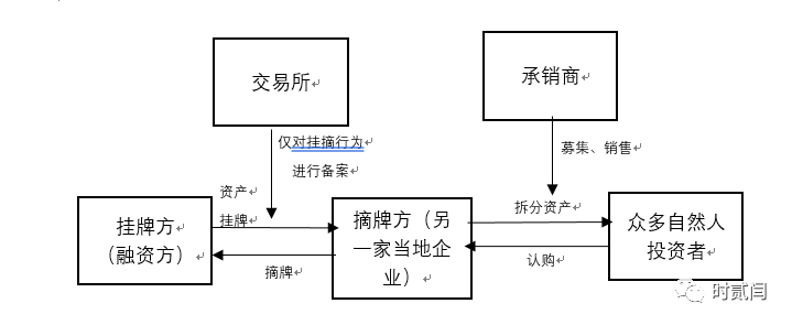 即明面上是掛牌方與摘牌方B2B結構,但事實上摘牌方下面包裹著N個自然人投資者。由于這一操作方式,在表面上符合各地金融辦等監(jiān)管機構的要求,因此交易所對管理人或承銷機構資金拆分、大標拆小標等行為睜一只閉一只眼。