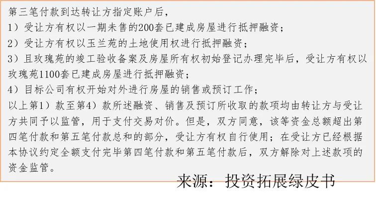 轉(zhuǎn)讓方完成已售房屋所產(chǎn)生的土地增值稅和企業(yè)所得稅清繳;轉(zhuǎn)讓方完成除玉蘭苑外全部工程款項(xiàng)的結(jié)清(直至該等工程完成竣工驗(yàn)收備案為止)。
