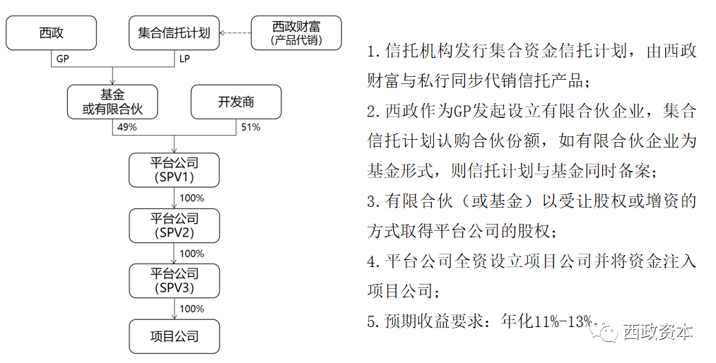 根據(jù)當(dāng)前地產(chǎn)信托優(yōu)先股融資業(yè)務(wù)的常規(guī)操作,以下就信托機構(gòu)與我們基金或有限合伙合作的優(yōu)先股融資業(yè)務(wù)進行舉例說明。