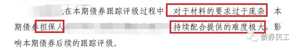 根據(jù)議案內(nèi)容,某城投公司本次更換評(píng)級(jí)機(jī)構(gòu)的理由是在債券跟蹤評(píng)級(jí)過(guò)程中“對(duì)于材料的要求過(guò)于龐雜”,而且是擔(dān)保人“持續(xù)配合難度極大”。如果按照議案內(nèi)容來(lái)看,本次更換評(píng)級(jí)機(jī)構(gòu)并不是發(fā)行人自身的材料提供原因,而是擔(dān)保人方面的配合難度很大。