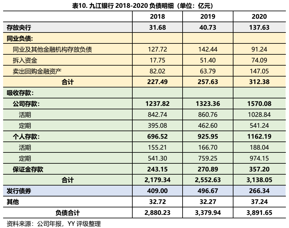 總體來說九江銀行的負債端結構穩定性有所提高,公司存款占比較高的現狀短期難以改變。