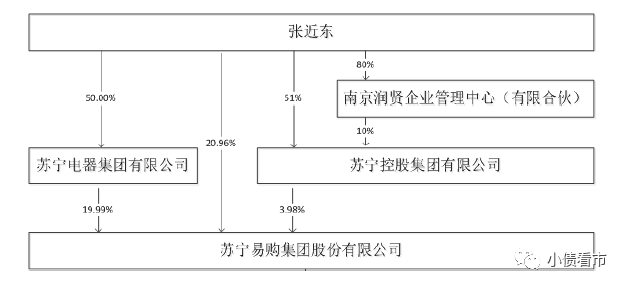從股權結構上看,實控人張近東直接持有蘇寧易購20.96%股份,除此之外他還通過蘇寧集團和蘇寧控股對蘇寧易購間接持股,合計持有33.3%股份。