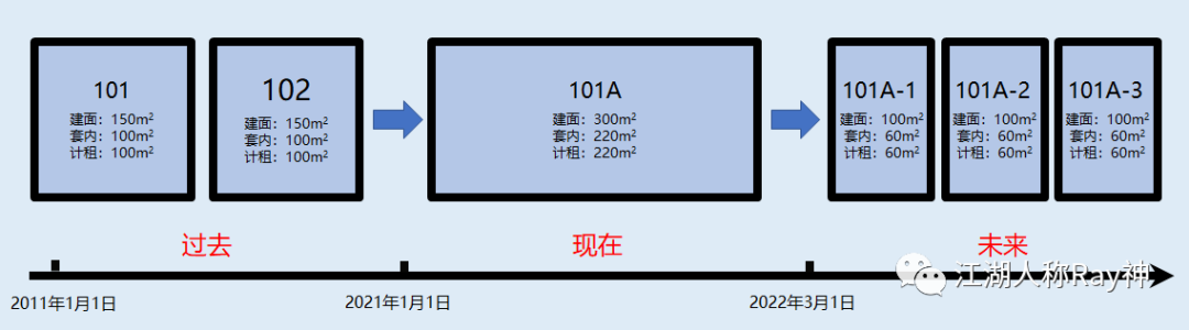 簡單來說,空間的面積并不是孤立存在的數據,而是存在著時間屬性的一項指標。要想做好空間的經營分析,就需要追溯到空間的過去、現在和未來,即:每一個空間的面積過去從哪里來,現在是什么樣的情況,未來計劃變化成哪些空間的面積。只有這樣,像同比、環比之類的一切基于時間維度所展開的數據分析,才能分解到我們的最小經營單元上去。