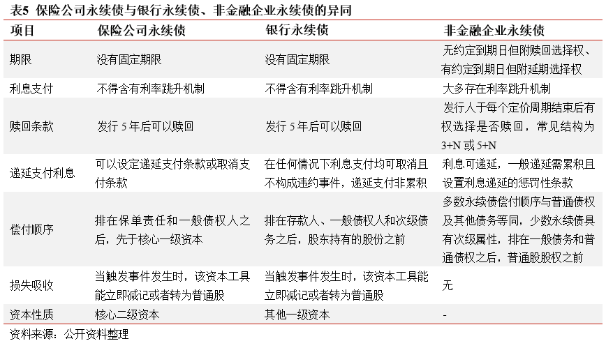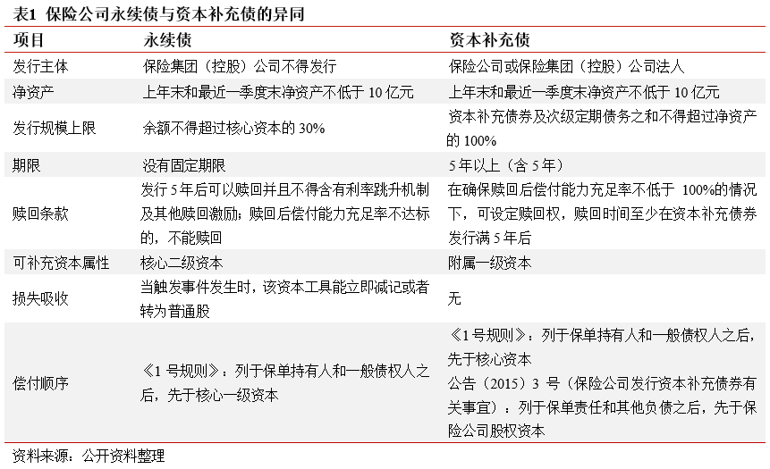 (1)與資本補充債補充附屬一級資本不同,保險公司永續債用于補充核心二級資本,能同時提高核心償付能力充足率和綜合償付能力充足率。