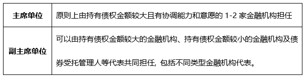首先, 根據《金融機構債權人委員會工作規程》第六條第二款的規定, 債委會組建會議應當明確主席單位和副主席單位。