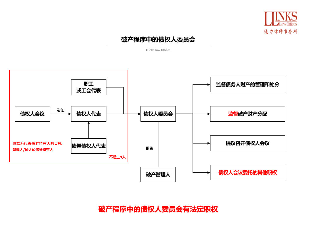 所以, 總的來說, 破產程序中的債權人委員會是根據《企業破產法》所設立的組織, 《企業破產法》也賦予了其法定的職權, 而加入破產債權人委員會也是債權人監督管理人工作的最佳方式, 因此對于部分金額較大的債權人或者債券持有人而言, 如果想要最終的重整方案更有利于自己, 加入債權人委員會都是必須要去爭取的。