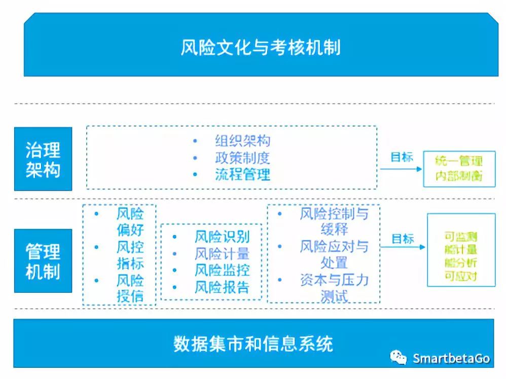 管理機制通過十個模塊的合力,達到監管要求的可監測、能計量、能分析、可應對,而其中核心的是通過立體化內評體系提升內評的風險識別和風險計量能力。