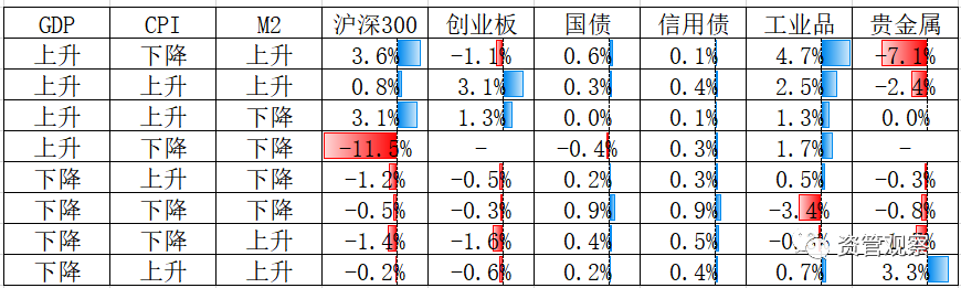 表1:經(jīng)濟(jì)周期與金融周期下的資產(chǎn)價(jià)格表現(xiàn)