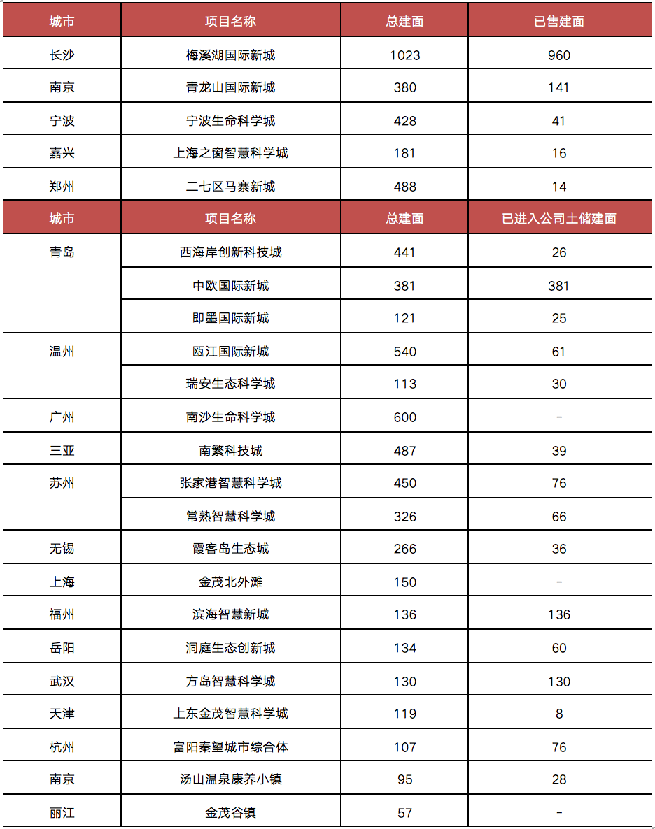 表:中國金茂已落地城市運營項目(單位:萬方)