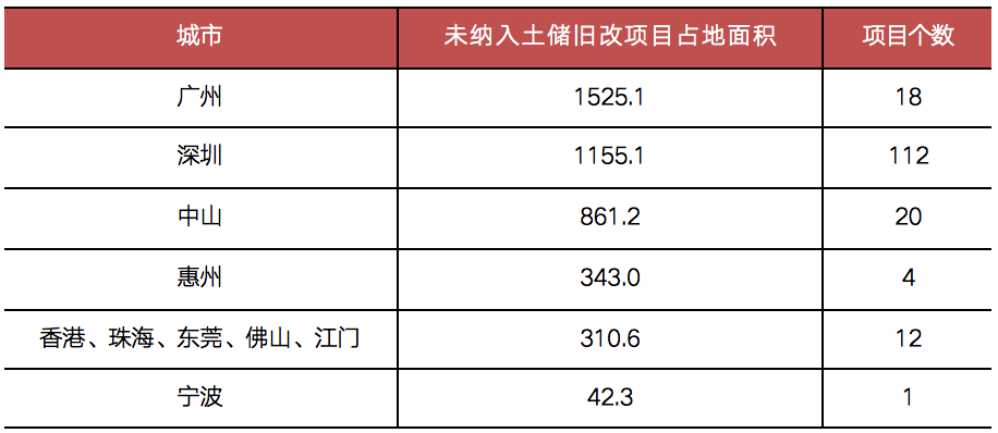 佳兆業未納入土儲的舊改項目情況(萬平方米)