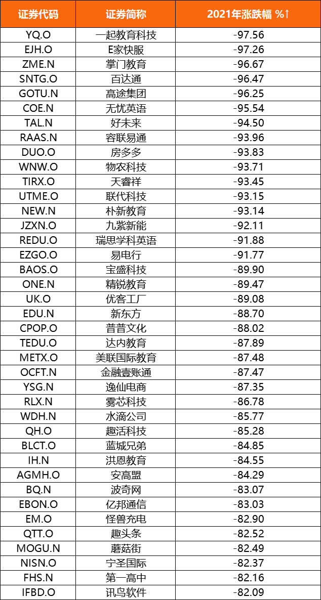 從反壟斷、雙減政策、網絡安全審查,到年末外國公司問責法案細則出爐,中概股全年遭遇了各種利空因素的影響。反壟斷罰款對一些頭部中概股的財務狀況造成利空;雙減政策對教培行業影響巨大,高途(GOTU.N)、好未來(TAL.N)、新東方(EDU.N)等中概股公司的市值因此不斷縮水;此外監管規則的細化和差異,也令中概股倍感壓力。