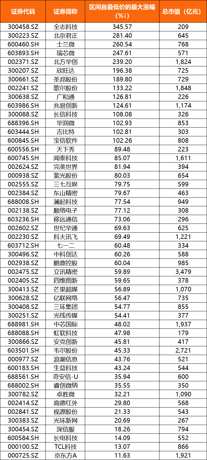 注:1、區間自最低價的最大漲幅、區間換手率的計算區間為2021年1月1日-2021年12月31日;