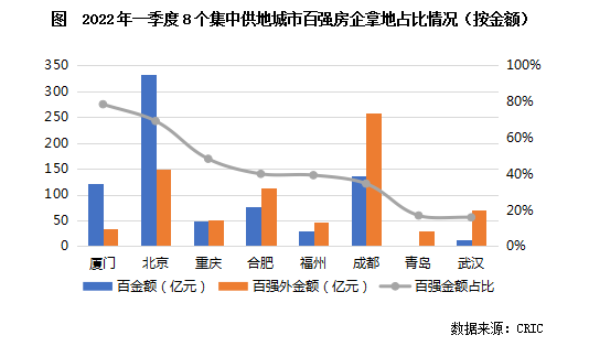 2、廈門、北京最受百強房企青睞,本地民企在合肥表現搶眼