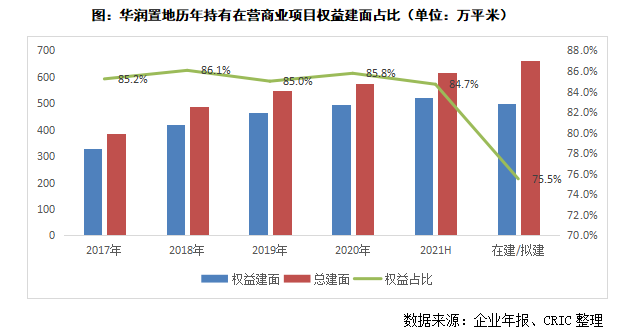 華潤(rùn)重持有,已開(kāi)業(yè)商場(chǎng)權(quán)益占比達(dá)85%左右