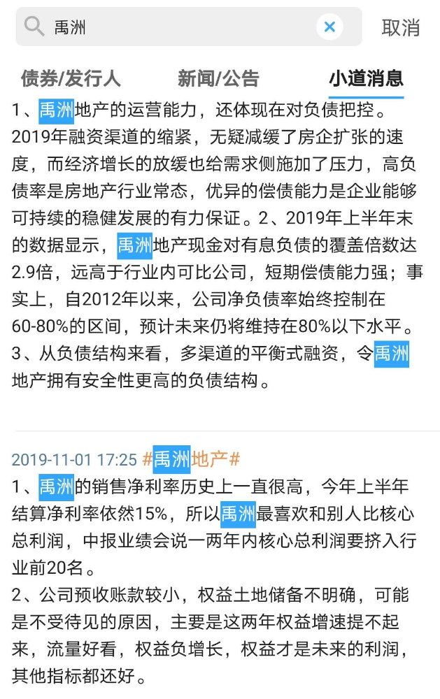 在債市大佬看來,禹洲的運營能力值得肯定。但是也在去年年底分析了公司不受待見的原因,并表示“權益才是未來的利潤”。