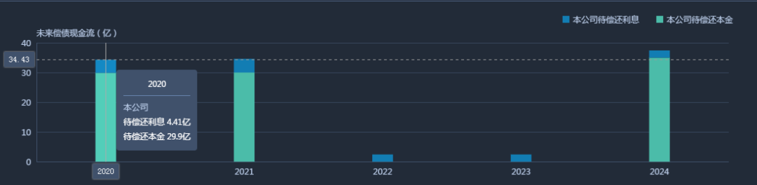 在DM上可以查詢到禹洲的近5年的在岸債券償債情況。2021年同樣是禹洲償債的高峰期,代償本金30億元,利息4.6億元。