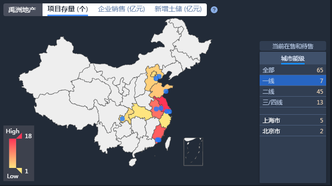 禹洲在全國共有65個項目,項目著重分布在二線城市。
