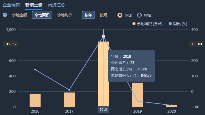 近5年禹洲新增拿地面積