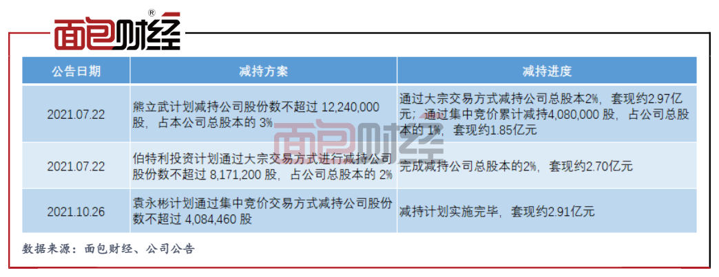 伯特利近日公告股東減持股份結果,控股股東袁永彬在11月7日至12月23日期間合計減持公司股份408.44萬股,套現(xiàn)約2.91億元。不僅是袁永彬,今年7月以來伯特利多位股東已實施減持,合計套現(xiàn)超過10億元。