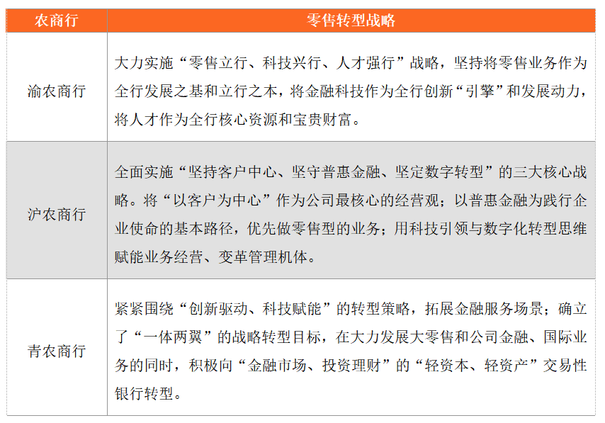 表3:農商行零售戰略對比