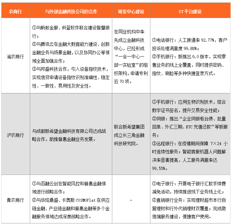 原標題: 三家最大上市農商行零售科技戰略對比