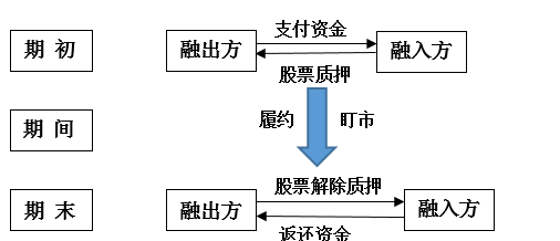 股票質(zhì)押式回購交易業(yè)務(wù)包括初始交易和購回交易兩次交易和兩次結(jié)算,業(yè)務(wù)模式為: