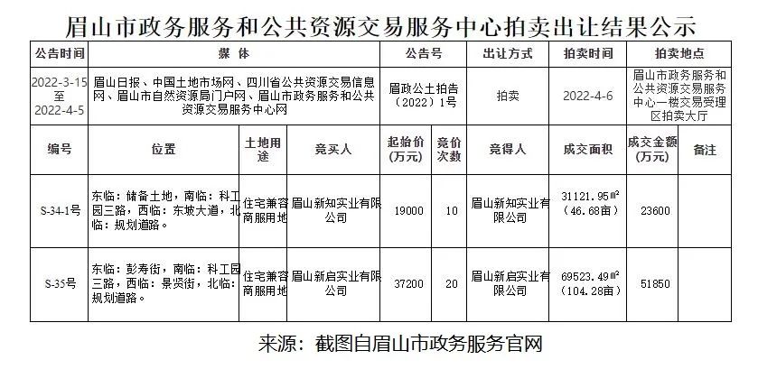 兩位買家為眉山新知實業(yè)有限公司,為眉山新啟實業(yè)有限公司。企查查顯示這兩家公司均為眉山市國資平臺100%持股。