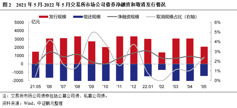 2. 5月份交易所公司債券凈融資636.20億元,共取消發(fā)行債券3只[1]