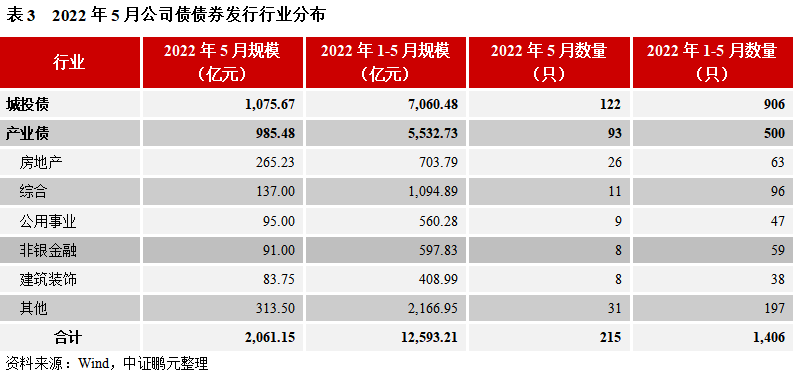 5. 5月份,交易所公司債中城投債發(fā)行規(guī)模占比52%,產(chǎn)業(yè)債行業(yè)以房地產(chǎn)和綜合為主