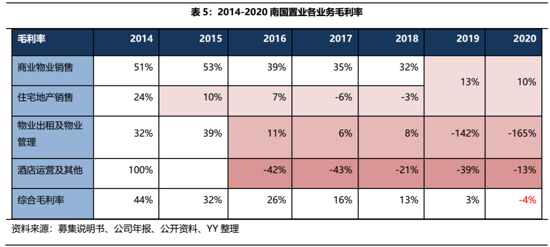 為了驗證南國置業解釋的可信度,我們對造成公司虧損較為嚴重的房地產銷售板塊和物業出租分別進行分析。