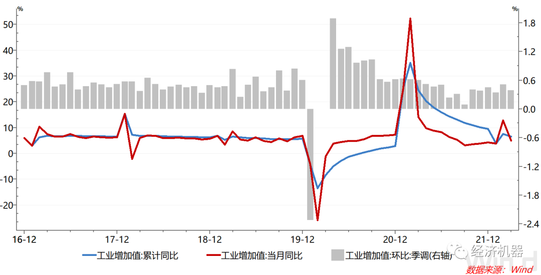 圖2、工業增加值:累計同比、當月同比、季調環比