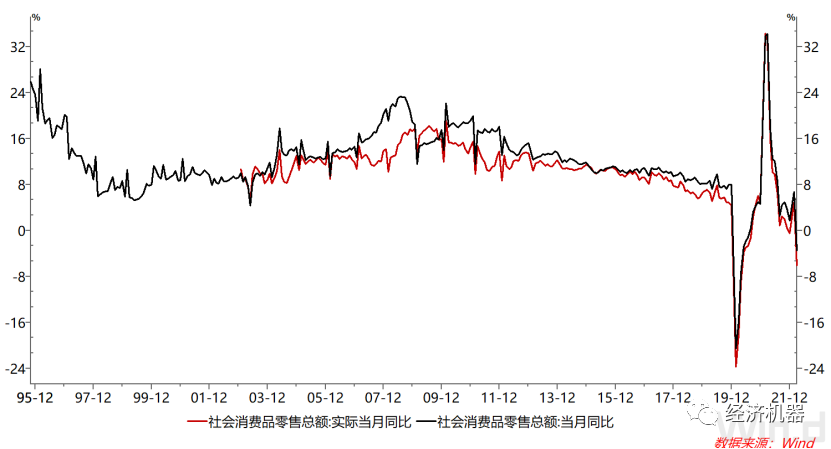 圖9:社會消費品零售總額名義增速與實際增速逼近2020年疫情最低點