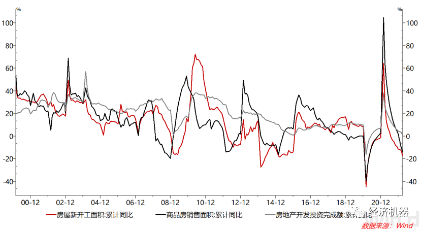 圖15:房地產新開工、銷售面積及投資同比繼續回落