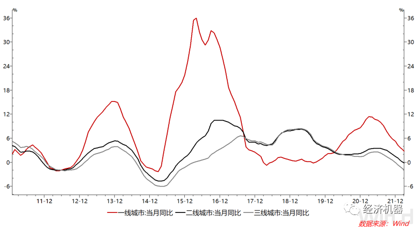 價格方面,70大中城市二手住宅價格指數繼續回落,低線跌幅領跑。一線城市同比下跌2.8%,較上月回落0.7個百分點;二線城市同比下跌0.2%,前值增長0.3%;三線同比下跌1.9%,較上月1.3%跌幅擴大。