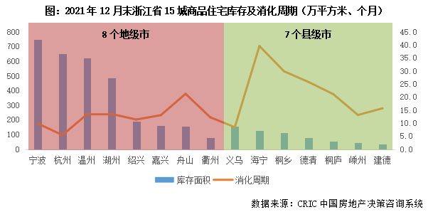 浙江省多數(shù)城市房地產(chǎn)庫(kù)存仍處合理區(qū)間,去化風(fēng)險(xiǎn)整體可控。典型如嘉興,盡管市場(chǎng)持續(xù)低迷,但房地產(chǎn)庫(kù)存明顯偏低,核心板塊還是處于無(wú)房可售的狀態(tài)。截至2021年12月,嘉興主城區(qū)庫(kù)存面積163萬(wàn)平方米,消化周期約13個(gè)月,成交去化依舊不成問(wèn)題。