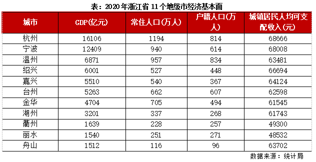 據(jù)七普數(shù)據(jù)顯示,2020年浙江省常住人口6457萬(wàn)人,較六普凈增長(zhǎng)1014萬(wàn)人,僅次于廣東省,高居全國(guó)第二位。其中,杭州、寧波和溫州常住人口都在1000萬(wàn)人左右,金華、臺(tái)州、嘉興和紹興同樣突破500萬(wàn)人。