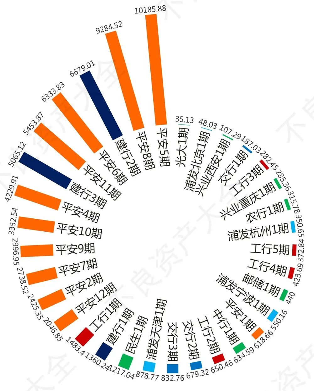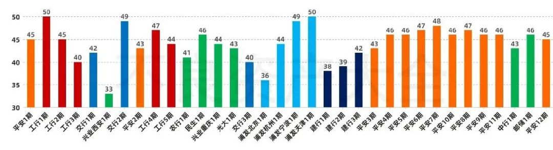 除了上述三家銀行,工商銀行在3月和6月分別成交3期和2期,浦發則在8月下旬連續兩天掛出4期。除此之外,其余參與的銀行多以1期試探性掛牌,本金余額總計占比不到3%.