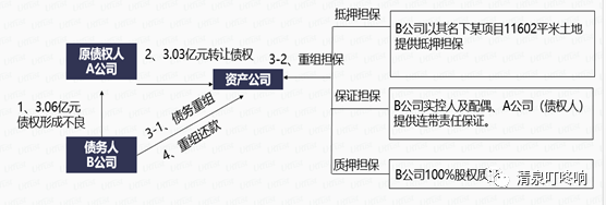 以某項目為例。在該項目交易結(jié)構(gòu)中,該資產(chǎn)公司以折價3.03億元收購了A公司對B公司3.06億元的不良非金債權(quán),然后再對該項目債權(quán)進(jìn)行了期限、重組寬限補(bǔ)償金、擔(dān)保措施等要素重組。