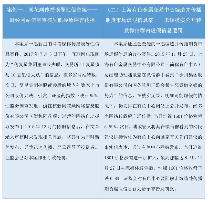 編造傳播虛假信息是證券期貨法律法規(guī)嚴(yán)格禁止的行為,歷來是證監(jiān)會稽查執(zhí)法打擊重點(diǎn)。近年來,證監(jiān)會依法履行監(jiān)管職責(zé),堅(jiān)決查處編造傳播虛假信息行為。2016年至2019年2月1日期間,證監(jiān)會共辦理相關(guān)案件17起,依法做出行政處罰13起,對同花順網(wǎng)絡(luò)、曾改雄、曹磊等人進(jìn)行了嚴(yán)肅查處;2起案件移送公安機(jī)關(guān)采取治安處罰措施。