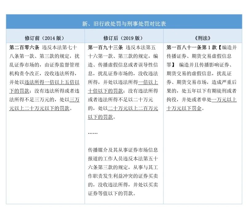 證券類犯罪涉及到一系列行政違法與刑事犯罪的定罪標(biāo)準(zhǔn)不同、證據(jù)采用規(guī)則不一等刑行交叉問題,一直是司法實(shí)踐領(lǐng)域中的難題。原《證券法》將編造、傳播虛假信息的主體限定在“國家工作人員、傳播媒介從業(yè)人員等有關(guān)人員”,而《刑法》中規(guī)定編造并傳播證券、期貨交易虛假信息的行為主體為“單位和個人”。二者規(guī)定之間出入較大,而最新修訂并于今年3月正式實(shí)施的《證券法》將原有的行為主體修改為“任何單位和個人”,這是認(rèn)定編造并傳播證券、期貨交易虛假信息罪的一步突破,使得證券行政違法和證券刑事犯罪的行為主體趨近統(tǒng)一,能讓行政干預(yù)的證券類犯罪從接受行政處罰到承擔(dān)刑事責(zé)任的銜接更為順暢。