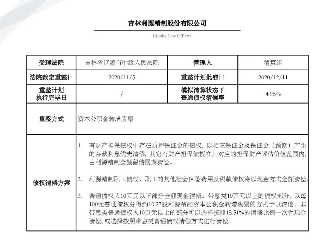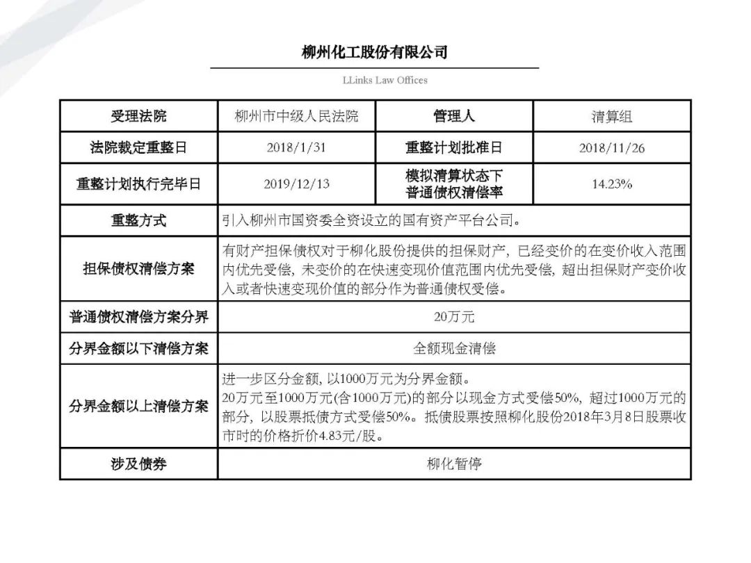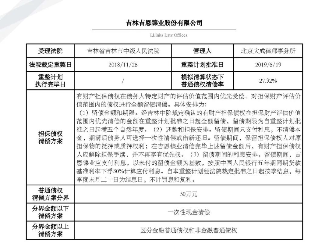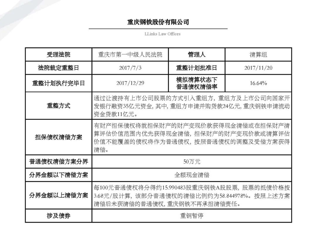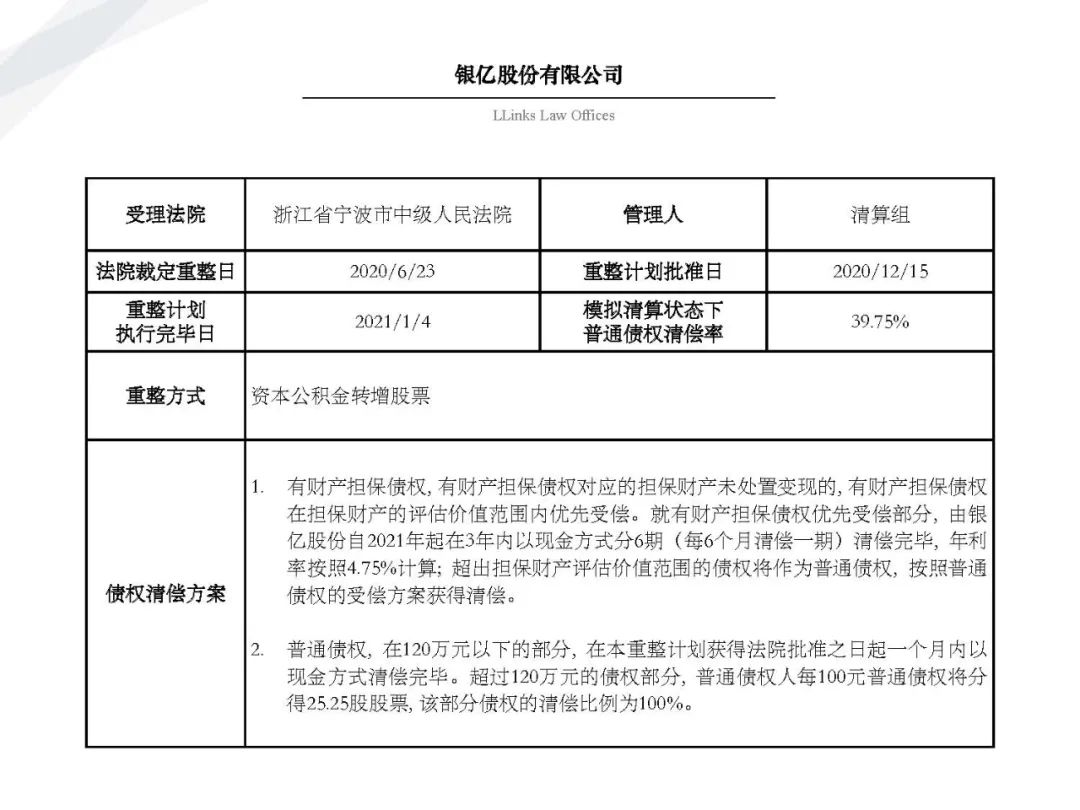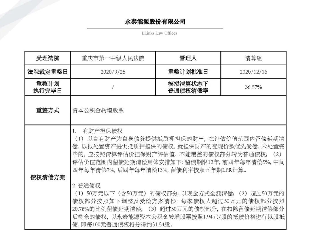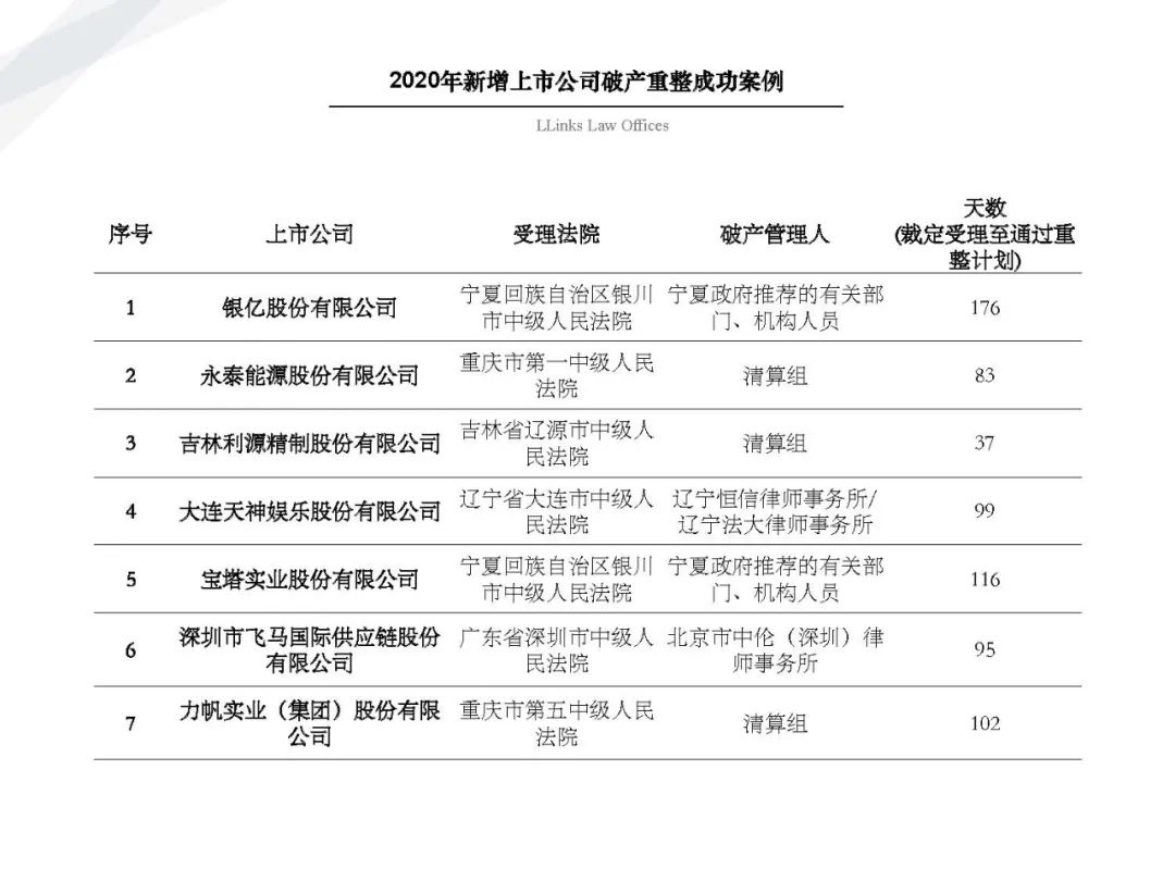 隨著金融市場風險頻發、債務人大量進入破產程序, 債權人不得不開始學習了解“債委會”、“重整計劃”、“債權清償率”等等此前并不熟悉的事務。為了讓大家更好地了解破產重整程序和破產重整計劃, 我們特在原先整理的自2010年1月1日至2019年12月31日公開披露的69個破產重整案例基礎上(具體請見《91頁PPT | 讀懂破產重整計劃的那些事兒》) 新增2020年上市公司公開披露的破產重整案例, 其中不乏大家耳熟能詳的企業,例如銀億、永泰能源。