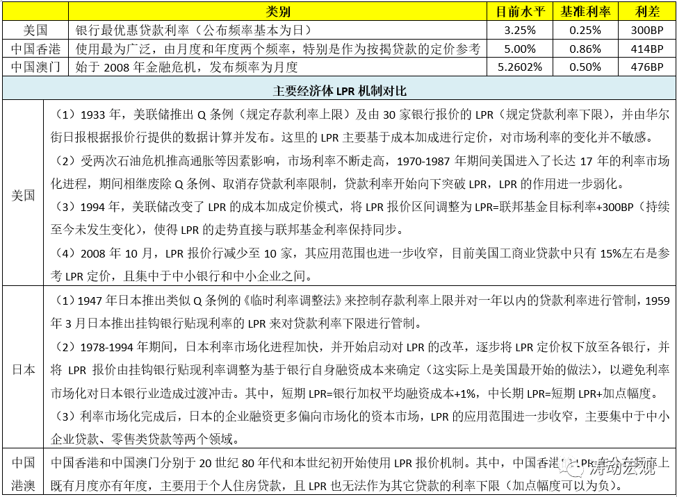 (三)美國、日本以及中國港澳等主要經濟體LPR機制對比
