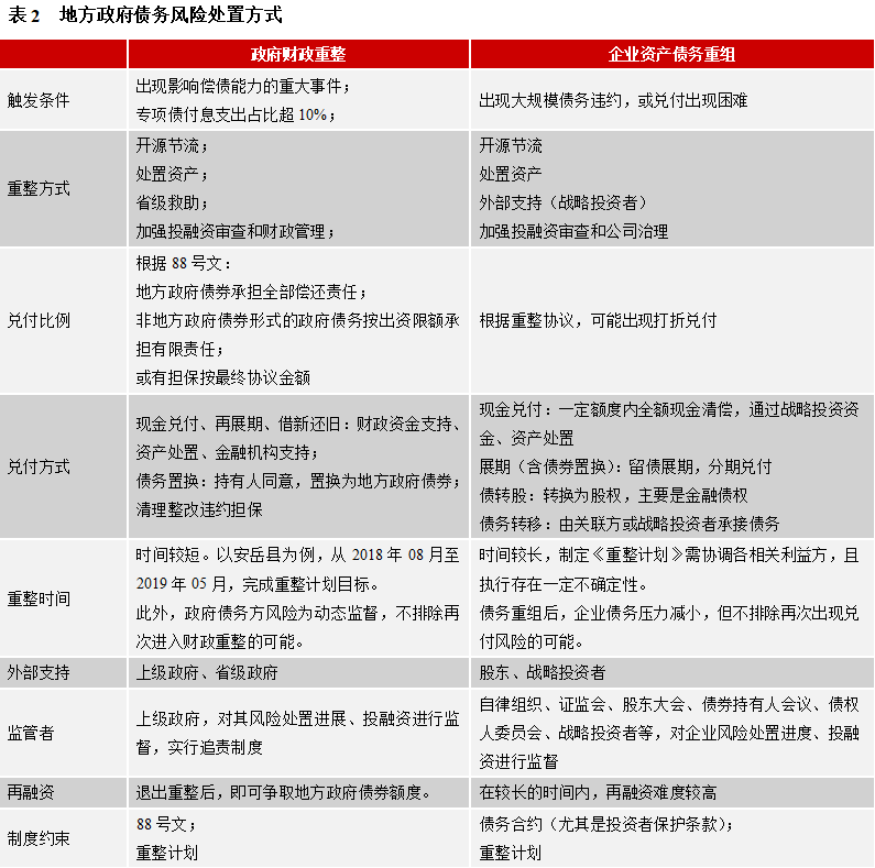 此外,政府財政重整,通常對所有債務進行統一處置,而企業往往是不同的債權人分別行使債務求償權,也導致債務風險化解存在很大的難度。