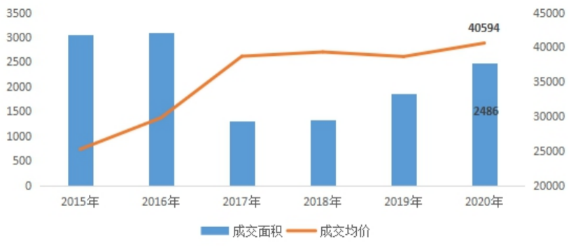 圖:2015-2020年上海商品住宅供求情況(萬平方米、元/平方米)